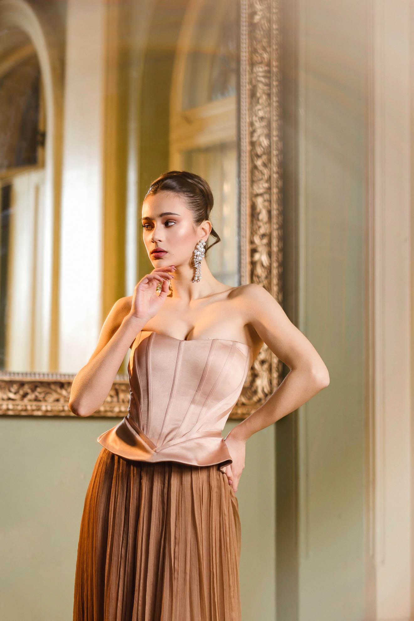 – Model cu corset separat si fusta din matase