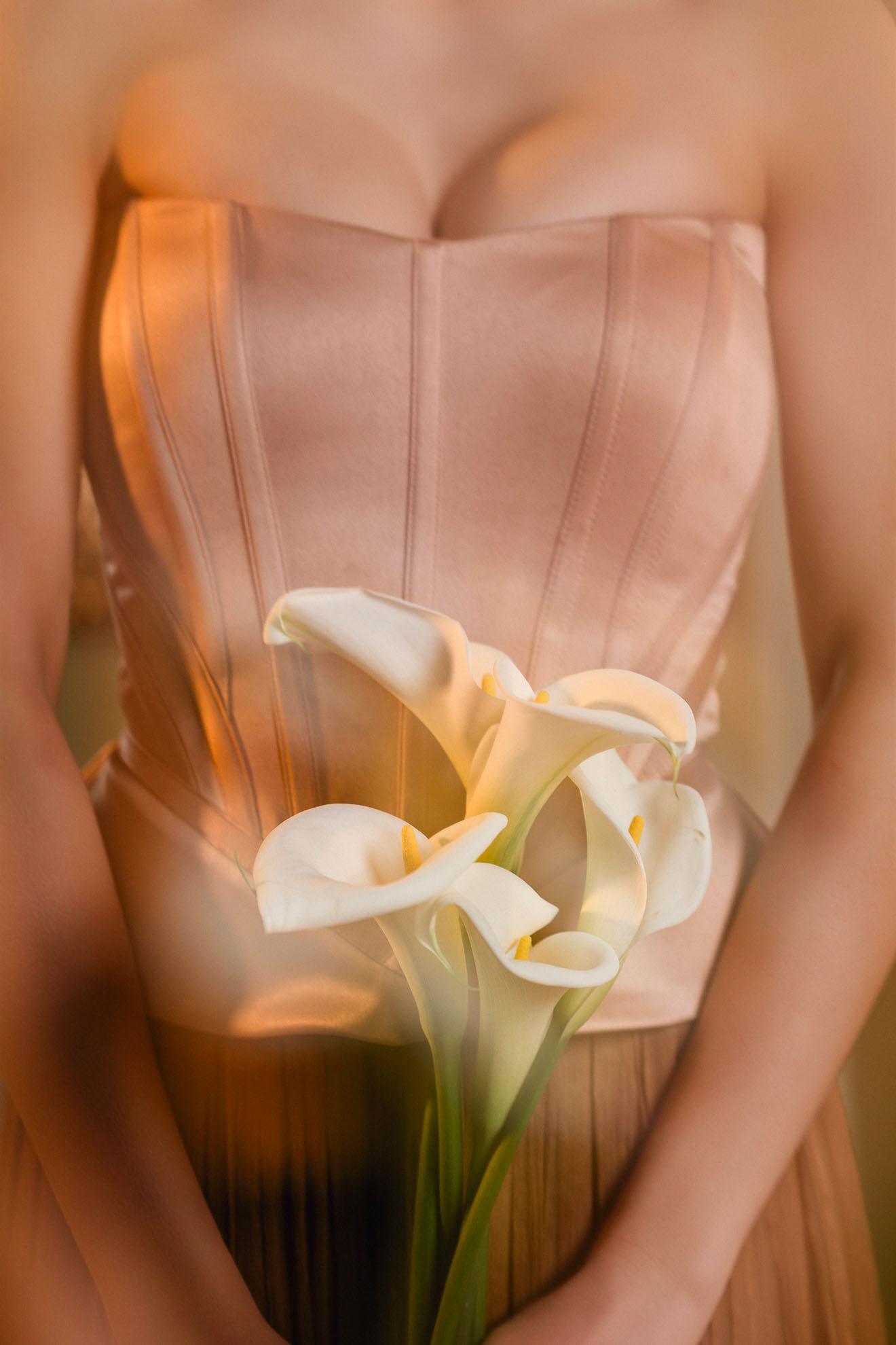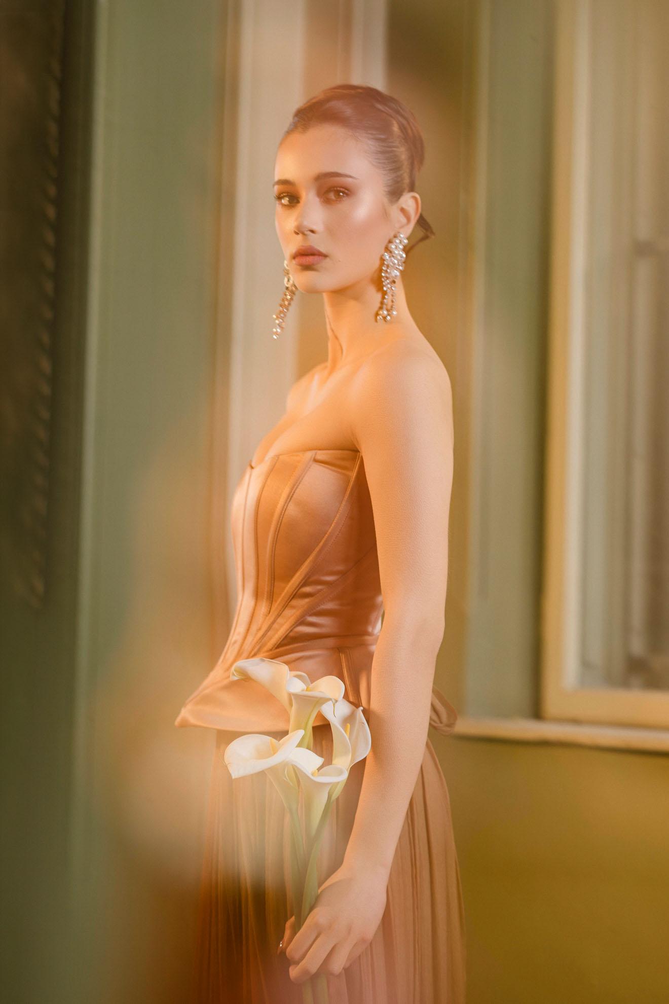 Compozitie: 100% voal de matase naturala (fusta), 95% poliester, 5% elastan (corset)
