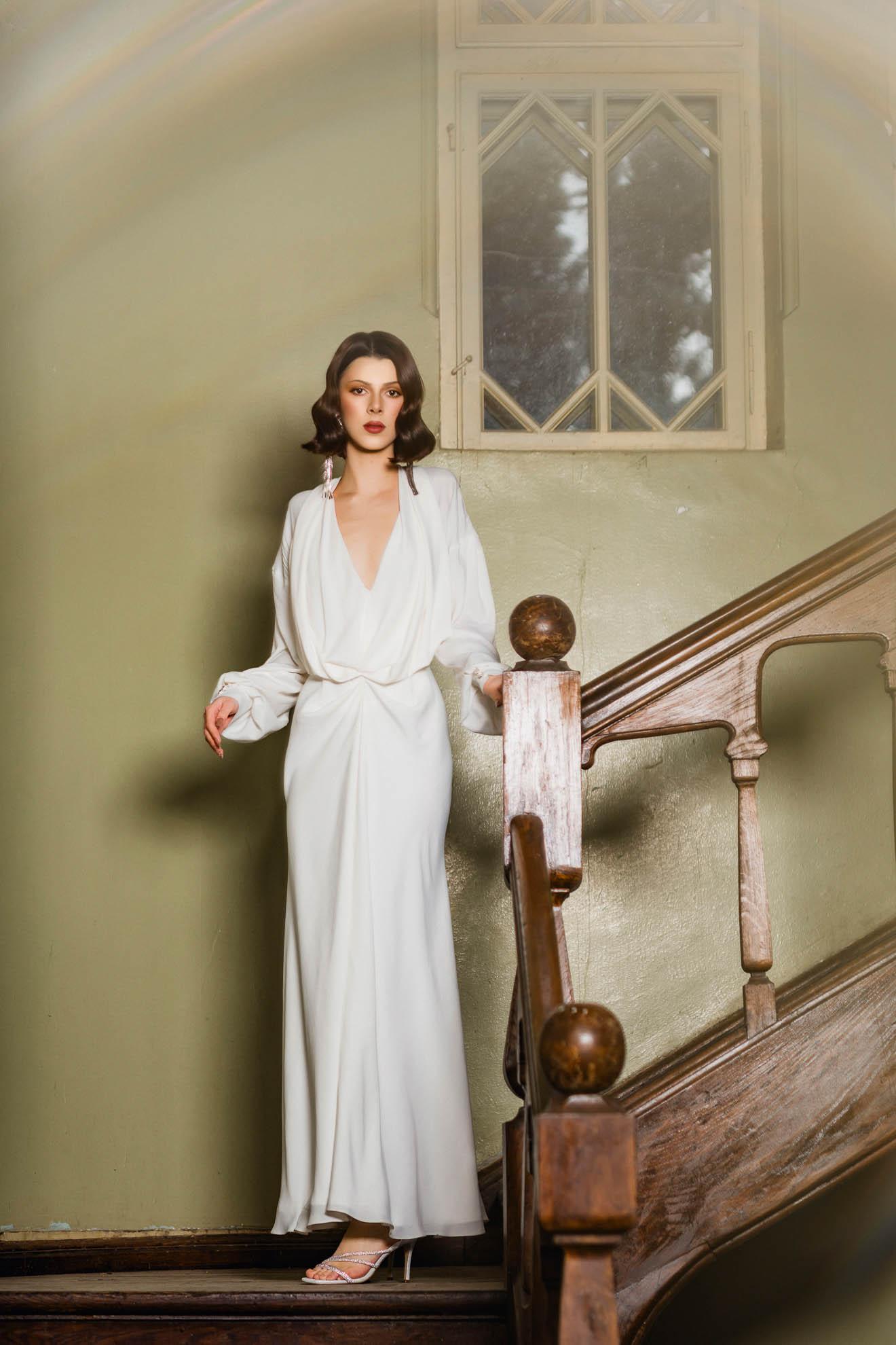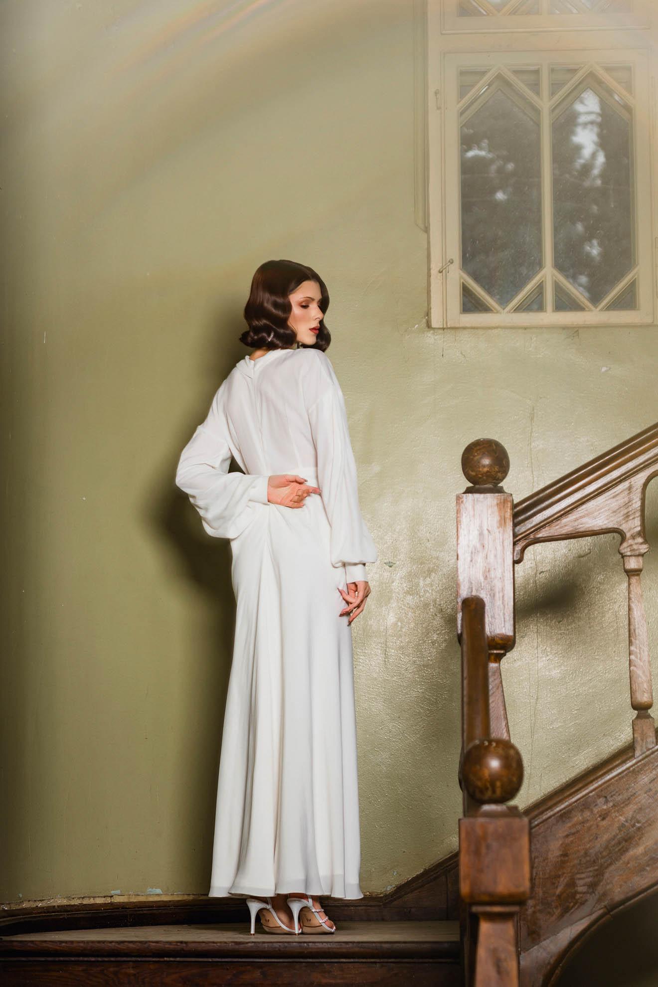 – Fermoar ascuns la spate, maneci lungi
