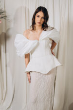 – Model fix pe talie si bust, fix pe solduri, corset separat din matase si fusta separata din dantela