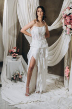 – Rochie cu corset separat imbracat in dantela aplicata manual