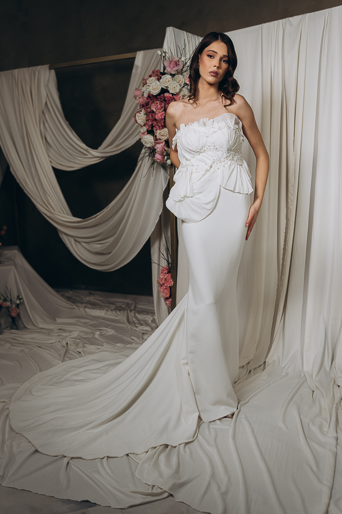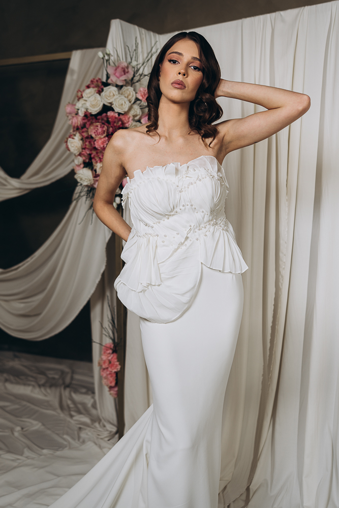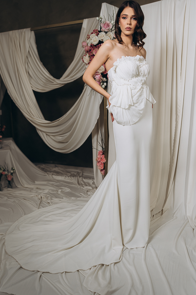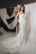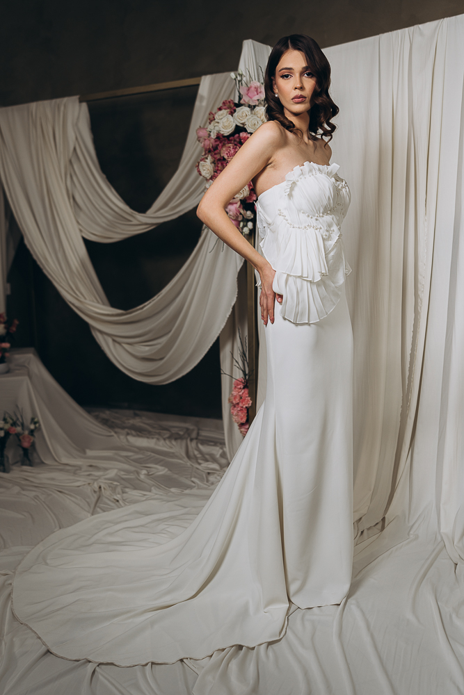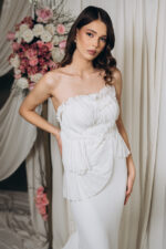 – Model tip sirena cu aplicatii de matase realizate manual, corset si margele aplicate manual