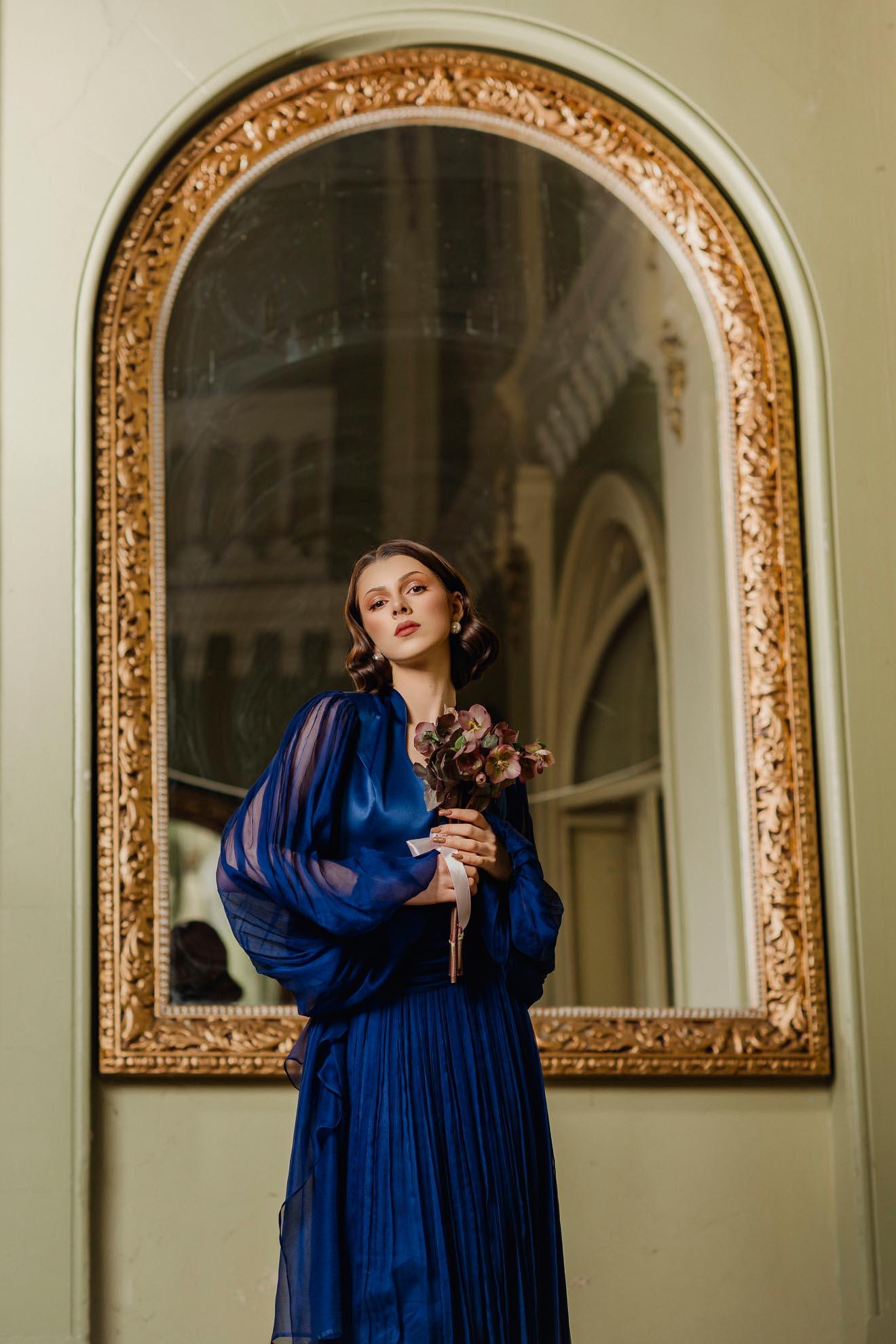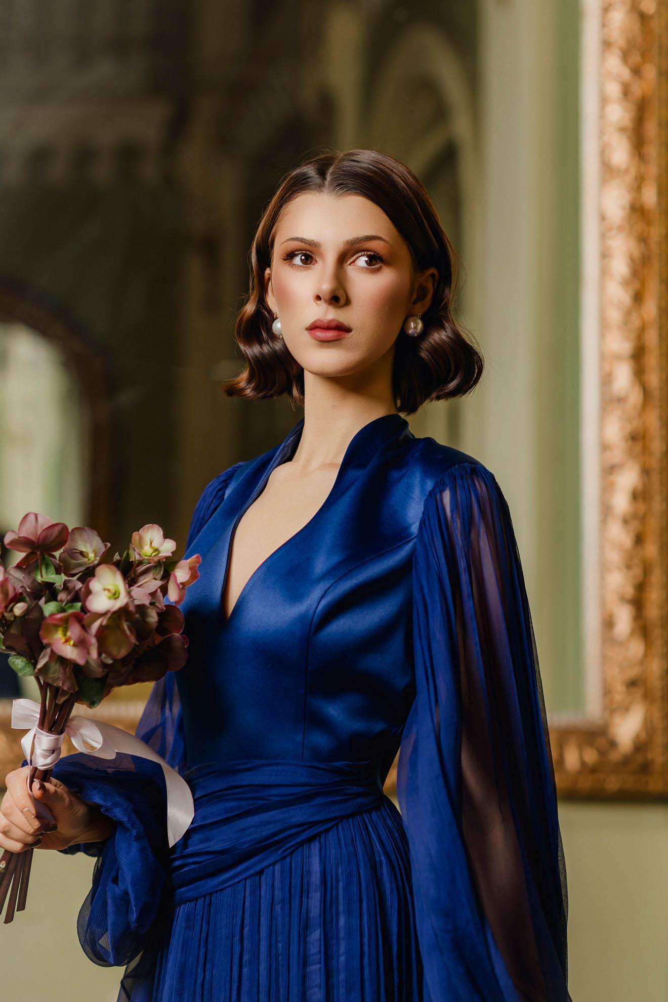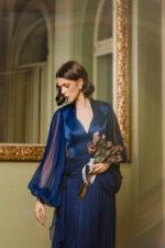 Compozitie: 100% voal de matase naturala, bust din tafta elastica- 95% poliester, 5% elastan